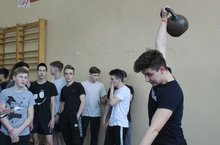 Спортивный праздник "Армейский экспресс" прошёл в гимназии. Четыре команды юношей 9, 10, 11 классов соревновались в эстафетах, поднятии гири, подтягивании, отжимании, перетягивании каната, стрельбе из пневматической винтовки.