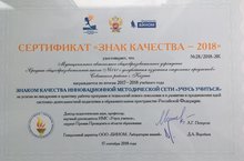 17 сентября 2018 года в Институте системно-деятельностной педагогики (г.Москва) состоялась первая церемония вручения «Знака качества – 2018» инновационной методической сети «Учусь учиться». Высокой награды была удостоена МАОУ «Школа № 141» Советского района г. Казани.