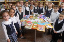 “Китапка икенче тормыш” акциясе кысаларында 2б сыйныф укучылары үзләренең сыйныф җитәкчеләре, Захватова Надежда Леонидовна, белән мәктәп китапханәсе фондына китаплар бүләк иттеләр.