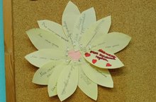 В ходе сеходняшнего разговора о важном каждый ученик 5 "В" класса получил лепесток и написал на нём одно слово-эпитет, характеризующее маму. В итоге получился цветок "Признание в любви маме".