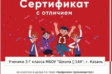 Ученики 3Г класса приняли участие во Всероссийской образовательной акции «Урок цифры» по теме «Цифровое производство» и были награждены сертификатами.