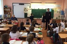 Бүген мәктәптә юл хәрәкәте куркынычсызлыгы Гыйльметдинов Ленар Камил улы, Россия Эчке эшләр министрлыгының Казан шәһәре буенча ЮХИДИ бүлегенең юл хәрәкәте иминлеген пропагандалау буенча өлкән инспекторы белән очрашу булды. Ул балаларга юлда йөрү кагыйдәләрен искә тошерде. Очрашу бик файдалы үтте.