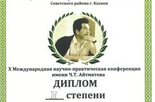 Поздравляем всех призеров и их руководителей!Бүген «Советлар Союзы Герое С.А.Әхтәмов исемендәге 121 нче лицей»да Чынгыз Айтматов исемендәге халыкара фәнни-гамәли конференция булып узды. Безнең укучыларыбыз актив катнашып түбәндәге урыннарга лаек булдылар: