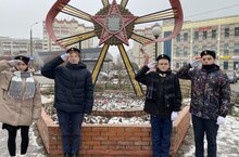 Возложение цветов к монументу, минута молчания - отряд юнармейцев.Советник директора по детским объединениям — Миннуллина Ландыш Радиковна