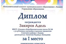 Муниципальное бюджетное общеобразовательное учреждение «Средняя общеобразовательная школа №144 с углубленным изучением отдельных предметов» Советского района г. Казани