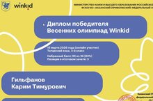 Ученик 3а класса Гильфанов Карим стал победителем весенней олимпиады "Winkid" по татарскому языку.