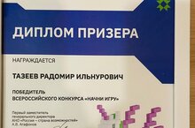 Ученик 11 А класса Тазеев Радомир с 1 по 5 марта принял участие и стал победителем в финале Всероссийского конкурса "Начни игру", запланированном к проведению в рамках Международного мультиспортивного турнира "Игры будущего" в ИТ - парке им. Башира Рамеева в г. Казани. Конкурс поддержан Наблюдательным советом АНО "Россия - страна возможностей" под председательством Президента Российской Федерации В.В.Путина. Поздравляем Радомира с победой, желаем дальнейших успехов!