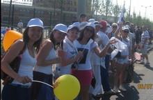 Всех участников пробега приветствуют жители Казани и, конечно, все сотрудники нашей 156-ой школы.
