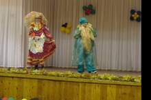 Игровая программа «Дары осени», 4 листок, пришелся на 23 октября. В гости пришла Осень, она загадала загадки, потанцевала и поиграла с детьми, послушала о себе песни и стихи.