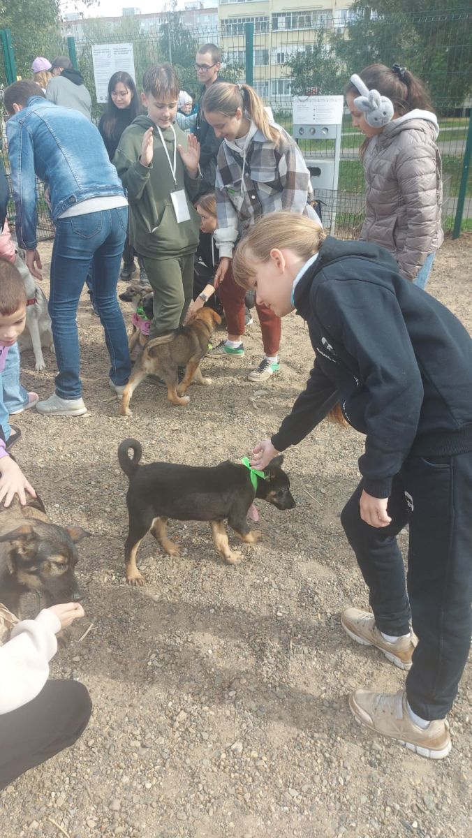 Опубликовано: 04.09.2022Сегодня 4 сентября, 5Г класс принял участие в благотворительной акции «Лапа дружбы» на бульваре по улице Фучика в Казани. Можно было приютить питомцев из приюта, купить им корм, погулять с ними.