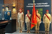 Знаменная группа в составе юнармейцев МБОУ «Школа № 161» с честью приняли участие в данном мероприятии. Участники поздравили всех присутствующих, а также возложили цветы к уличному мемориалу -