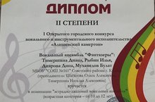 Поздравляем учащихся 4Б класса, ставших призерами II степени на городском конкурсе "Алишевский камертон" в номинации "Эстрадно-джазовый вокальный ансамбль"
