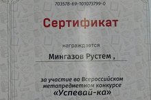 Ученик 4А класса Мингазов Рустем принял участие во Всероссийском метапредметном конкурсе "Успевай-ка". Учитель: Батыршина М.Р.