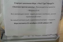 Все желающие могут задать вопрос знатокам, опустив его в этот ящик в фойе школы на 1 этаже. За самый интересный и креативный вопрос - подарок.