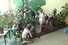 День школьного лагеря "Открытый мир" сегодня прошел под названием "День природы". Состоялась выставка рисунков, а также ребята проявили заботу о растениях, живущих в школе.