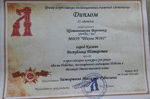 Поздравляем учеников 3А класса, призеров всероссийского конкурса рисунков "Весна Победы", посвященного годовщине Победы в Великой отечественной войне: