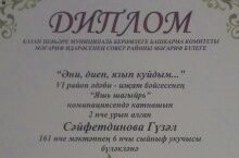 Ученица 3А класса Сайфутдинова Лейсан и ученица 6А класса Сайфутдинова Гузель заняли 3 и 2 места соответственно в районном конкурсе чтецов, посвященном Дню матери в номинации "Молодой поэт". Благодарим за подготовку призеров учителей татарского языка Девятееву А.А. и Хабибуллину К.А.