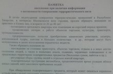 Памятка населению при наличии информации о возможности совершения террористического акта