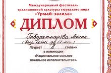 Поздравляем Габдрахманову Лейсан лауреата II степени Международного фестиваля традиционной культуры тюркского мира «Урмай-зэлидэ» в номинации «Национальное сольное вокальное исполнительство»