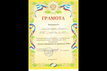 Грамотой награждается агитбригада «Десант ЗОЖ» школы №167 в конкурсе-фестивале агитбригад по профилактике асоциальных явлений «Свежий ветер-2013г.» в номинации «Лучшее мероприятие по пропаганде ЗОЖ».