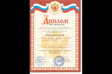 Дипломом награждается Хохлов Арсений, ученик 2 Б класса школы №167, занявший III место в возрастной категории 10 лет и моложе на турнире по теннису «Новогодняя сказка». Декабрь 2012 год