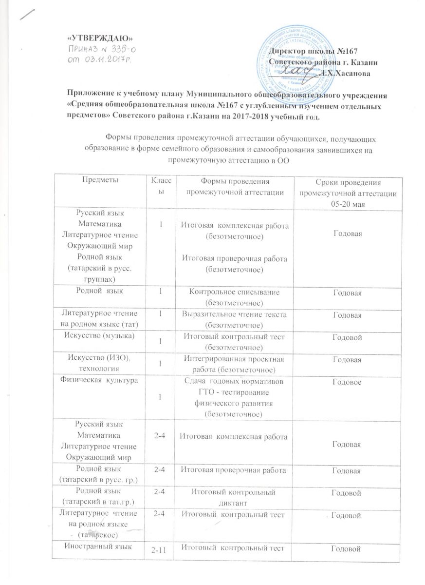 Приложеие к учебному плану по семейному образованию и самообразованию