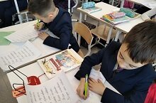 Сегодня для учеников 2 класса прошел конкурс “Волшебное перо”. Цель конкурса: воспитание уважительного отношения к языку, к письму как к средству владения языком, развитие вкуса к красивому почерку. Конкурсанты написали каллиграфическим почерком, применяя стандарты каллиграфии и чистописания, соблюдая правила орфографии и пунктуации.