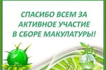 Благодарность родителям за активное участие в сборе макулатуры "Эко-мир" 24.03.2022