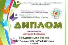 Поздравляем ученика 3а класса Габдрахимова Раниса, ставшего лауреатом 2 степени Республиканского конкурса художественного чтения, посвященного Республике Татарстан (учитель Мусина И.Ф.). Нашему талантливому гимназисту желаем новых побед в творческих конкурсах!
