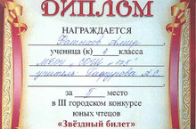 16 февраля состоялся III городской конкурс юных чтецов «Звёздный билет» в рамках республиканского конкурса «Живая классика». После районного этапа Фатыхов Амир, ученик 4 «Д» класса (учитель Гафурова А. С.) занял 1 место и достойно представил нашу школу на городском этапе, заняв 2 место. От всей души поздравляем Амира с этой победой, желаем дальнейших творческих успехов ! Молодец!