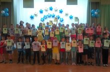 Как не хотелось нам прощаться, увы, этот день наступил. Сегодня, 30 июня состоялось торжественное закрытие лагеря «Вектор успеха». Весело, с задором провели прощальный концерт две «Бабки-ёжки». Каждый отряд свои впечатления о лагере выразил в своём прощальном выступлении. Это были песни, очень трогательные, проникновенные стихи, инсценировки из жизни лагеря. Ребята вспоминали, как совершали экскурсии, культпоходы в кино и на спектакли. Много познавательного, интересного и дети узнали из бесед, лекций, тематических ежедневных мероприятий. Каждый ребёнок проявил свой талант в разнообразных конкурсах. Самое главное, что воспитанники пришкольного лагеря научились слушать друг друга, радоваться успехам других, коллективно творить. Если даже присутствовал дух соперничества между отрядами, всё же всех детей объединяла дружба. Ребята нашли формулу успеха - это дружба, взаимоподдержка и постоянное позитивное настроение. Дети выразили слова огромной благодарности администрации школы, начальнику лагеря, воспитателям и поварам школьной столовой. По окончанию праздника каждому ребёнку была вручена грамота и сладкий приз.