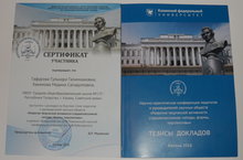 26 нчы мартта КФУ ның Н.И.Лобаевский исемендәге фәнни китапханәсендә Рәсәй күләмендә Н.И.Лобачевский исемендәге фәнни конференция уздырылды. Укытучылар өчен “ Өлкән сыйныф укучыларының иҗади активлыгын үстерү методлары һәм формалары” дигән темага түгәрәк өстәл оештырылды. Бу конференция мәктәбебезнең татар теле һәм әдәбияты укытучылары Гафарова Г.Г. , Хәкимова М.С. “ Укучыларның иҗади үсеш үзенчәлекләре” дигән темага чыгыш ясап, үзләренең эш тәҗрибәләре белән уртаклаштылар. Конференция материаллары җыентыкта урын алдылар. Сезгә киләчәктә дә уңышлар телибез.