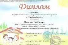 Милославская Милада, ученица 3б класса, стала победителем республиканского конкурса творческих семейных проектов «Семейный Очаг» (учитель Гафурова А.С.). Поздравляем!