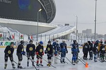 Хоккейная команда гимназии "Бизоны" сегодня приняла участие в открытии городского этапа соревнований "Золотая шайба". Торжественное открытие прошло на катке Акбарс Арены.