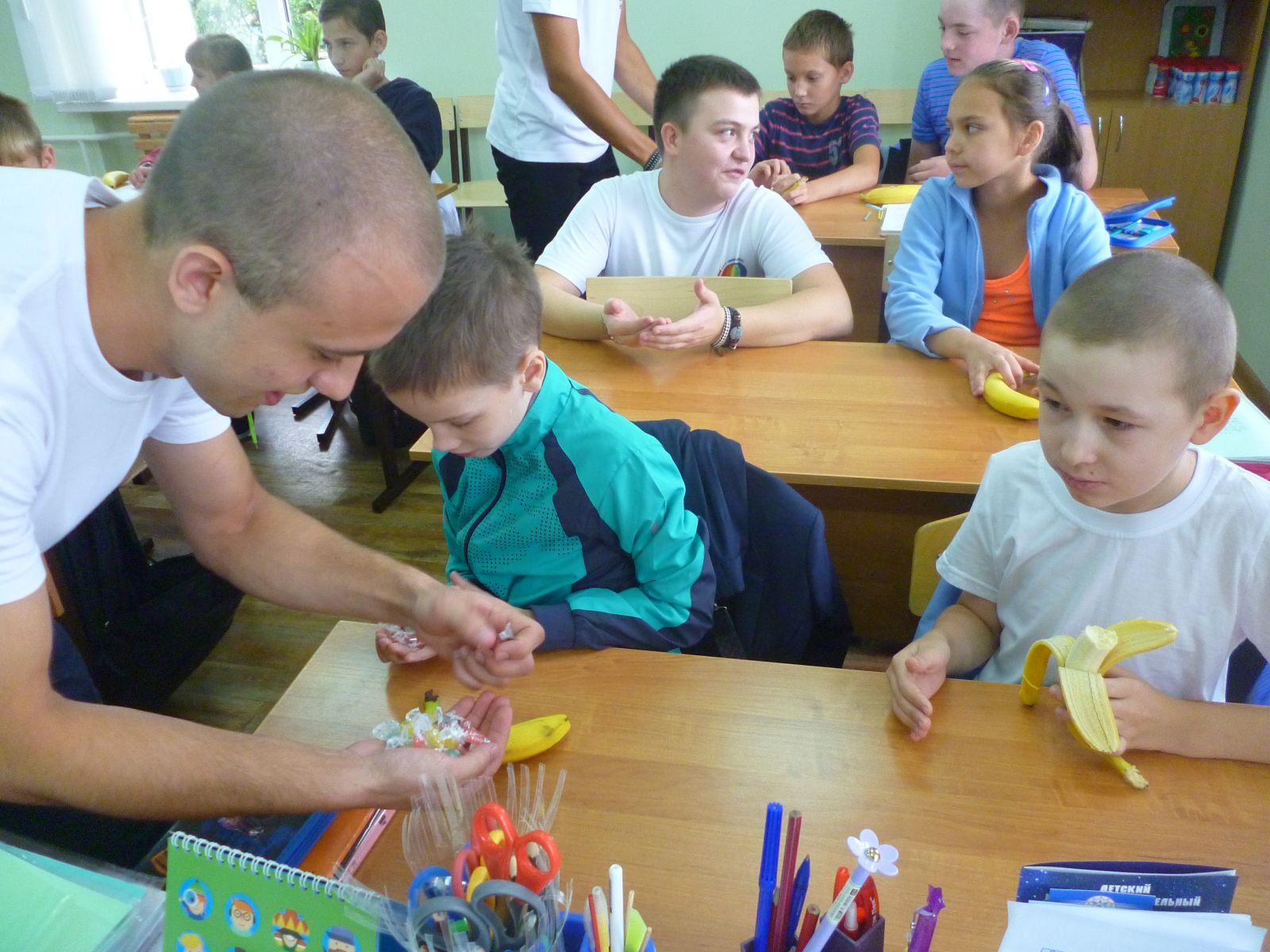 06.09.16г. в рамках "Недели добра" студенты Казанского автотранспортного техникума им. А.П. Обыденова провели с нашими учащимися беседу о добре и веселую музыкальную физкультзарядку. Мероприятие прошло интересно и с пользой. В конце встречи каждому ребенку достался сладкий приз.В очередной раз наши дети с радостью встретились со своими друзьями - студентами.Фото1,Фото2,Фото3,Фото4.