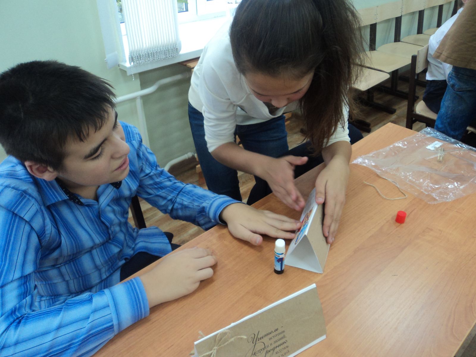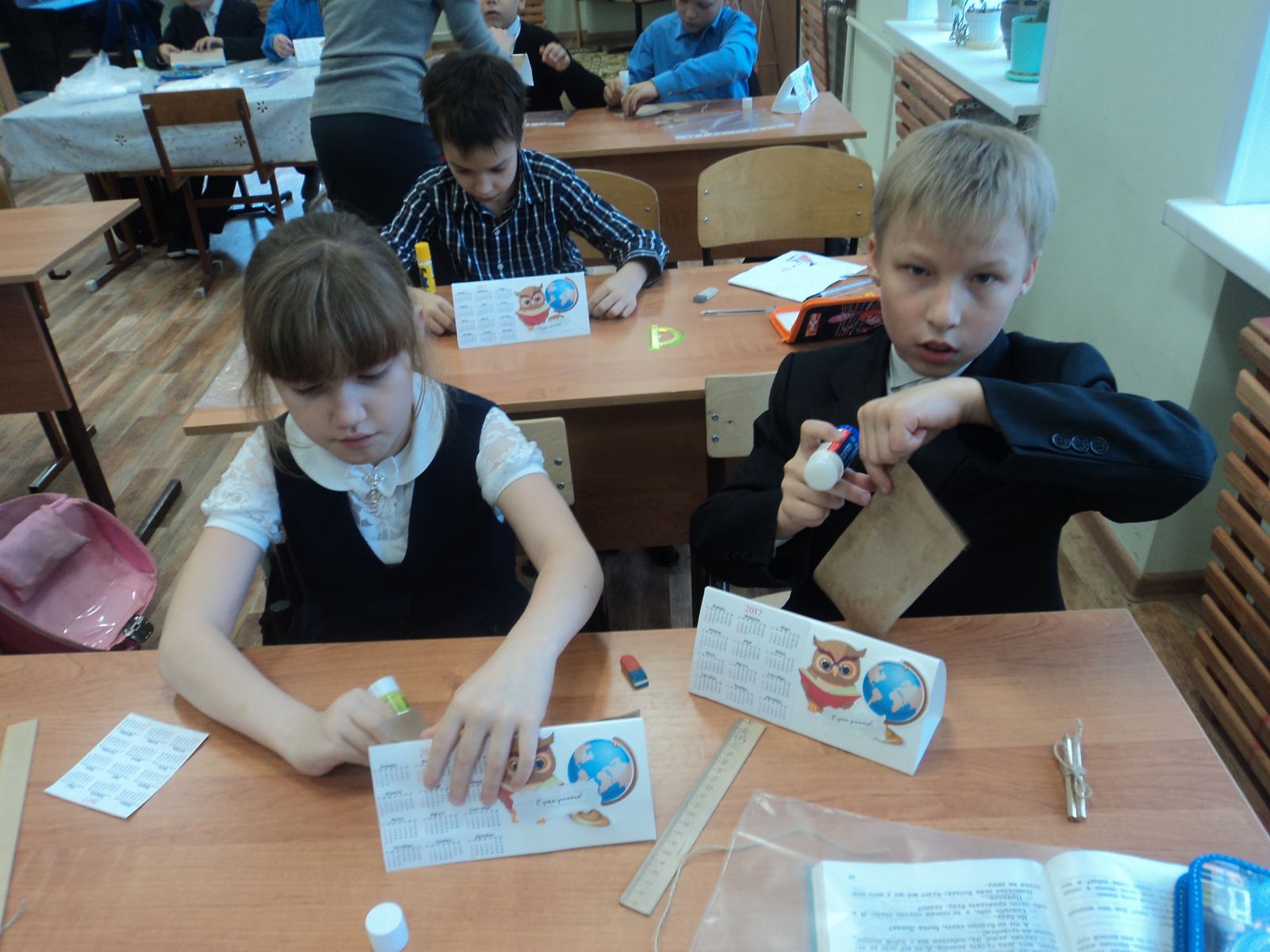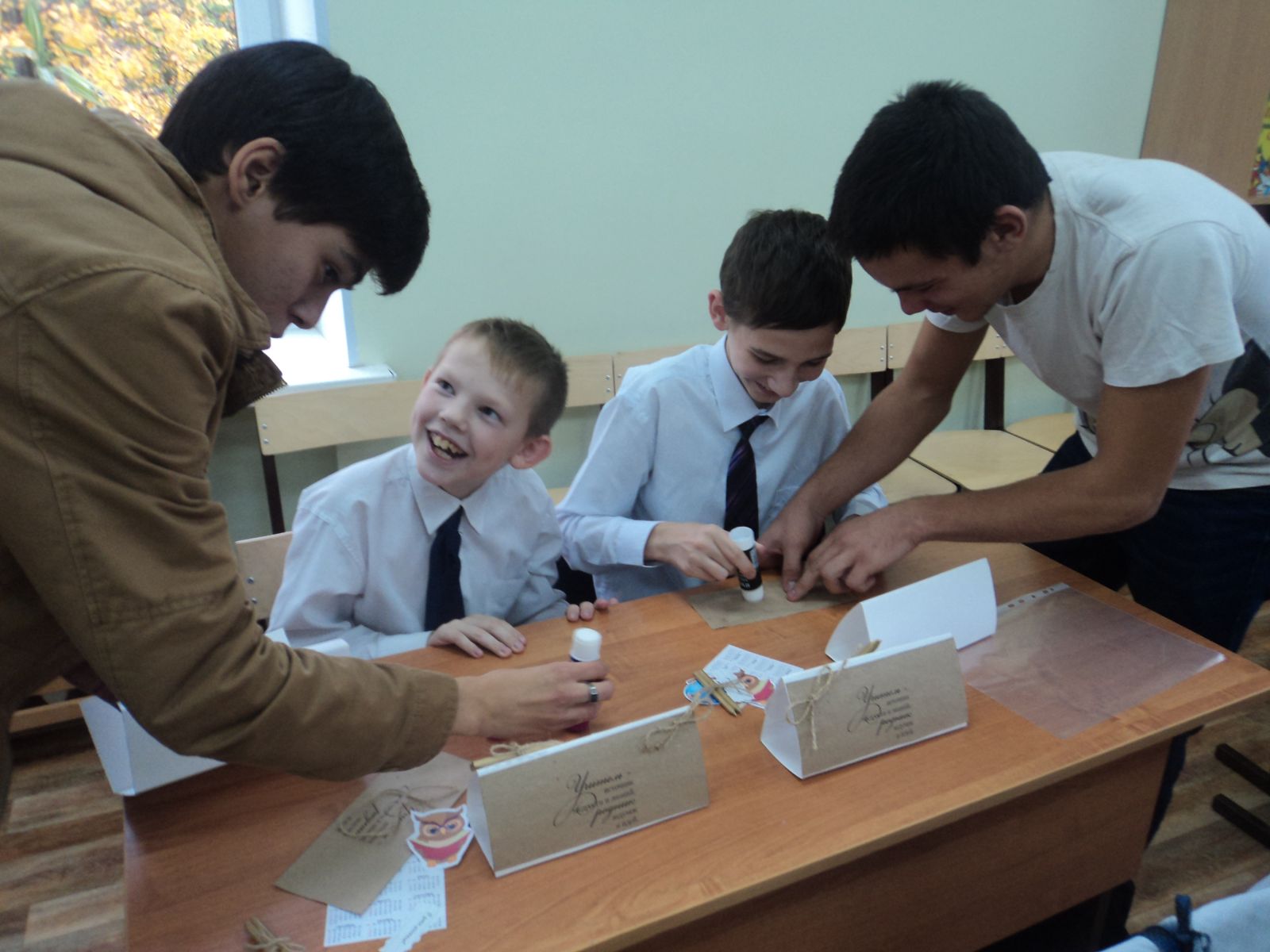 23.09.16 г. в очередной раз студенты Казанского автотранспортного техникума им. А.П. Обыденова провели с нашими ребятами мастер – класс по изготовлению подарочных настольных календарей. На этой встрече была творческая работа по созданию подарков ко Дню Учителя из картона, бумаги и подручных материалов. Наши дети с большим удовольствием занимались творчеством вместе со студентами. Эти календари ребята подарят своим учителям в их профессиональный праздник, ведь недаром говорят, что лучший подарок - это подарок, сделанный своими руками! Спасибо нашим друзьям - студентам за помощь в подготовке к празднику!Фото1,Фото2,Фото3.