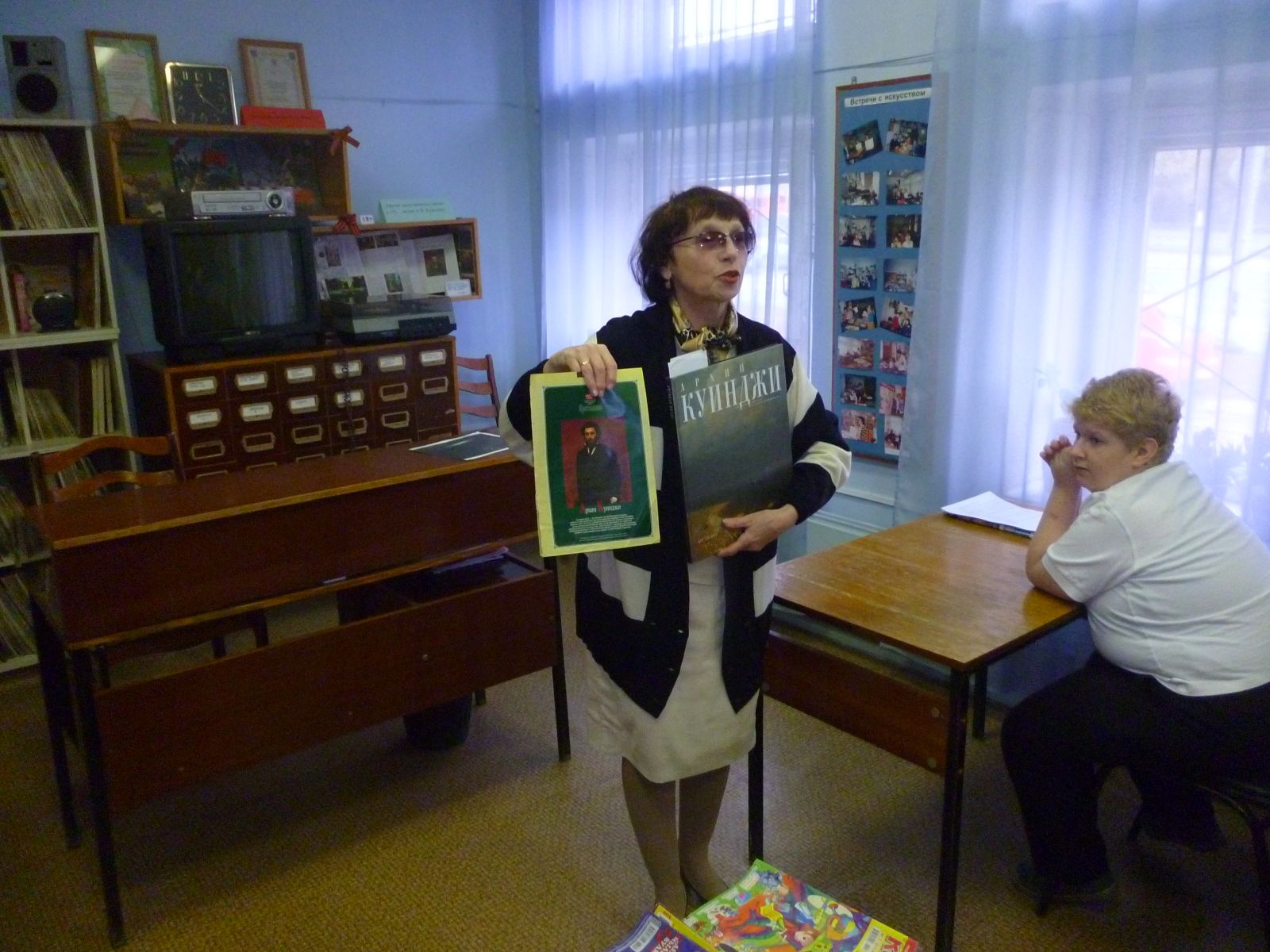 18.10.16г. учащиеся 5а класса вместе с педагогом-библиотекарем Федотовой Г. С. посетили библиотеку филиал №37 отдела искусств ЦДБ МБУК «ЦБС г. Казани», где главный библиотекарь Пекина Л. П. провела увлекательную беседу на тему: «Магия таинственного света», приуроченная к 175-летию мастера пейзажной живописи А. И. Куинджи. Ребята познакомились с биографией художника, его творчеством, просмотрели выставку его картин. Ребята отметили, что картины Куинджи наполнены оптимизмом и красотой русской природы. Фото1 , Фото2, Фото3.