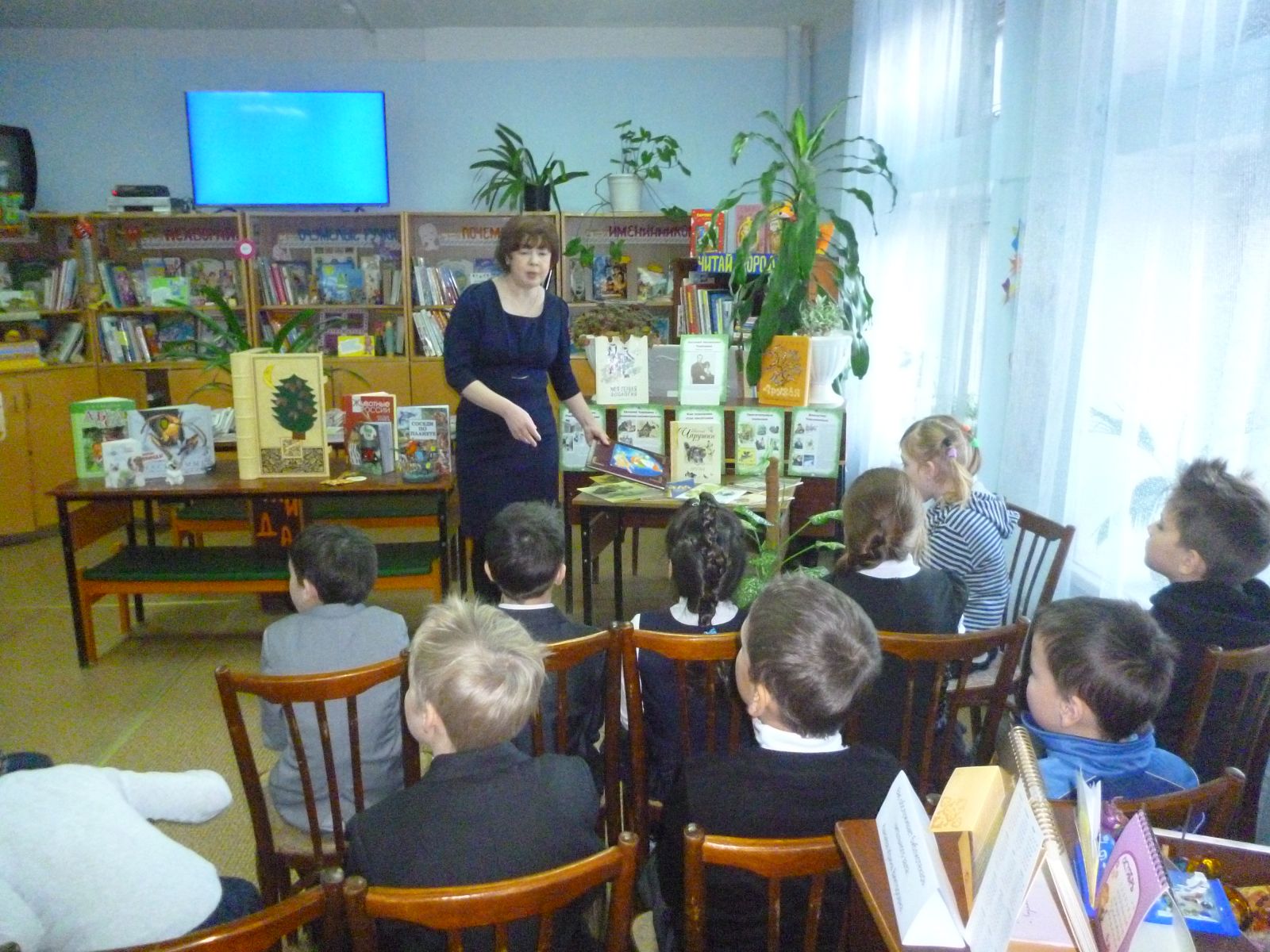 15.11.16г. учащиеся 2а, 3б классов вместе с педагогом-библиотекарем Федотовой Г. С. посетили библиотеку филиал №37 отдела искусств ЦДБ МБУК «ЦБС г. Казани», где библиотекарь читального зала Канаева И. В. провела экологический час "Жили были рыбы, птицы, звери" приуроченную к 115-летию советского графика, скульптора и писателя Е. И. Чарушина. Ребята послушали интересные истории о животных и птицах, просмотрели мультфильм "Мальчик и лягушонок". Затем главный библиотекарь Пекина Л. П. провела презентацию новых детских книг и музыкальную игру "Кто поет?" Еще ребята посмотрели выставку "Чудеса своими руками". Спасибо за очень интересные мероприятия! Фото1,Фото2,Фото3,Фото4,Фото6.