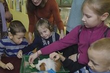 В один из дней декабря в городском детском эколого-биологическом центре побывали особые дети - дошкольники Казанской школы-интерната имени Е.Г.Ласточкиной. Поначалу детям и их родителям показали мир удивительных растений в оранжерее ГДЭБЦ, где еще и много интересного было рассказано экскурсоводом. А в зоологическом отделе центра ребята познакомились и пообщались с его обитателями - кроликами, морскими свинками, мышами, черепашками, птицами. Но особенно детям понравилась маленькая лошадка (пони) - Юлдаш. Принесенными с собою гостинцами - морковкой, капустой, хлебушком - дети с удовольствием угощали животных.