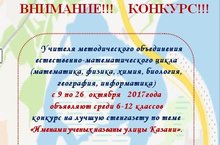 С 9 октября по 26 октября объявляется конкурс школьных стенгазет по теме "Именами ученых названы улицы Казани".