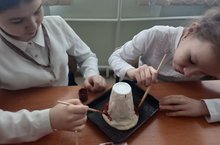 В 6А классе учителем географии Вавиловой Е.В. проведен мастер-класс "Мир вулканов". Учащиеся окунулись в красивый, завораживающий и опасный мир вулканов. Ребята изготовили из слоеного теста и пластилина модели, с помощью красок и угля декорировали их. Много впечатлений оставил опыт "Извержение вулкана"