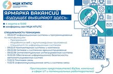 Ярмарка вакансий «Будущее начинается здесь»: МЦК-КТИТС приглашает высшие учебные заведения и компании в сфере IT! 22.01.2025