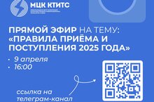 9 апреля в 16:00 МЦК-КТИТС проводит прямой эфир на тему «Правила приёма и поступления 2025 года».