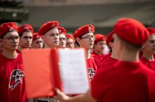 «Новобранцы» движения приняли присягу и произнесли клятву на верность Отечеству и всему юнармейскому братству.
