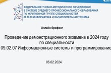 Онлайн-брифинг «Проведение демонстрационного экзамена в 2024 году по специальности 09.02.07 Информационные системы и программирование» 06.02.2024