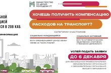 Республиканский конкурс «Транспортный грант» в этом году возвращается с большими и приятными изменениями: финансирование возросло с 30 до 60 млн рублей. Для получения компенсации на транспортные расходы необходимо подать заявление. (Обращаться в кабинет 208).Получатели гранта определяются экспертной комиссией в образовательной организации.