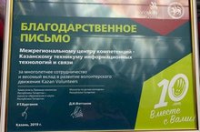 11 декабря 2019 года в концертном зале Поволжской государственной академии физической культуры, спорта и туризма города Казани, состоялась торжественная церемония вручения премии "Волонтер года". В этом году церемония посвящена 10-летию движения «Kazan Volunteers», которое появилось в Татарстане во время подготовки к XXVII Всемирной летней Универсиаде 2013 г. и создало базу для развития событийного волонтёрства в России.