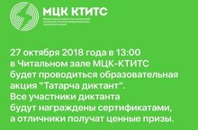 27 октября в читальном зале ГАПОУ "МЦК-КТИТС" прошла образовательная акция "Татарча диктант". Все участники диктанта были награждены сертификатами, а отличники акции получили ценные призы.