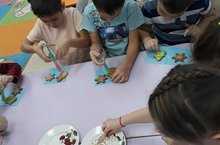 Дети подготовительной к школе группы №11: "Нам очень хотелось порадовать наших любимых, родных и дорогих мам, пап, бабушек и дедушек чем- то необыкновенным. Мы решили, что после новогодних праздников мы их будем радовать и удивлять, а для этого украсим вкусное рождественское печенье".