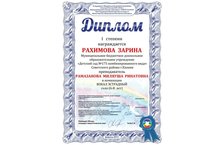 За участие в международном конкурсе-фестивале «Спектр Таланта» Дипломом 1 степени награждена Рахимова Зарина